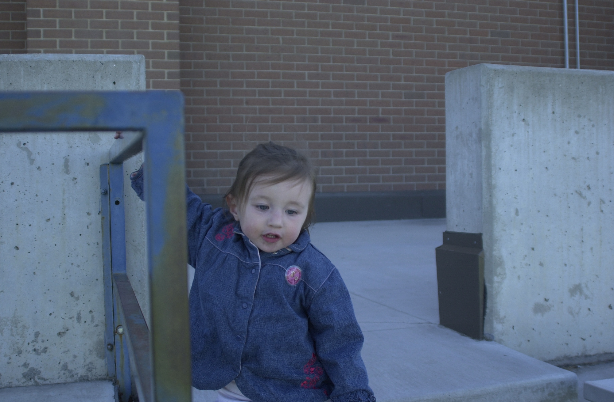 Shannon climbed up and down the stairs in the stands while my cousin played his soccer game.